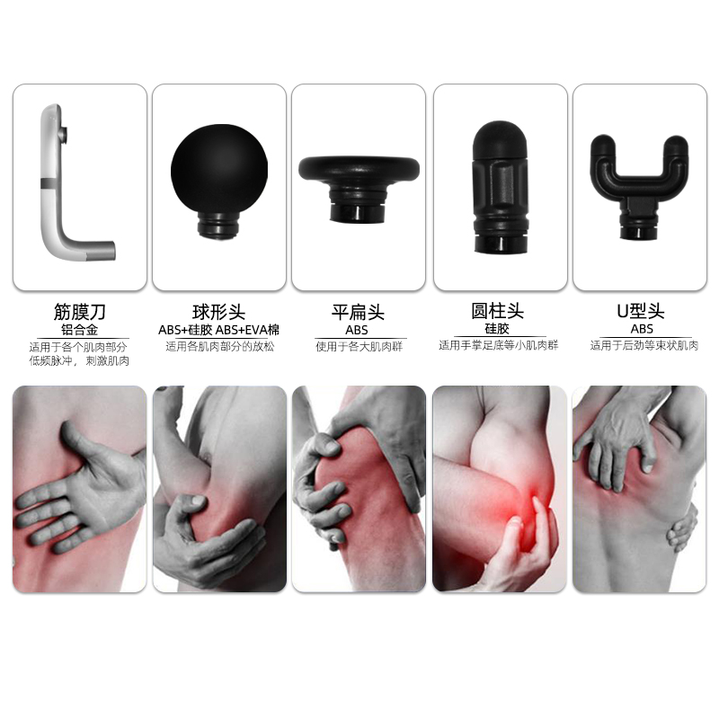 2. 標準配置:主機+筋膜刀+4種模頭+充電線+包裝