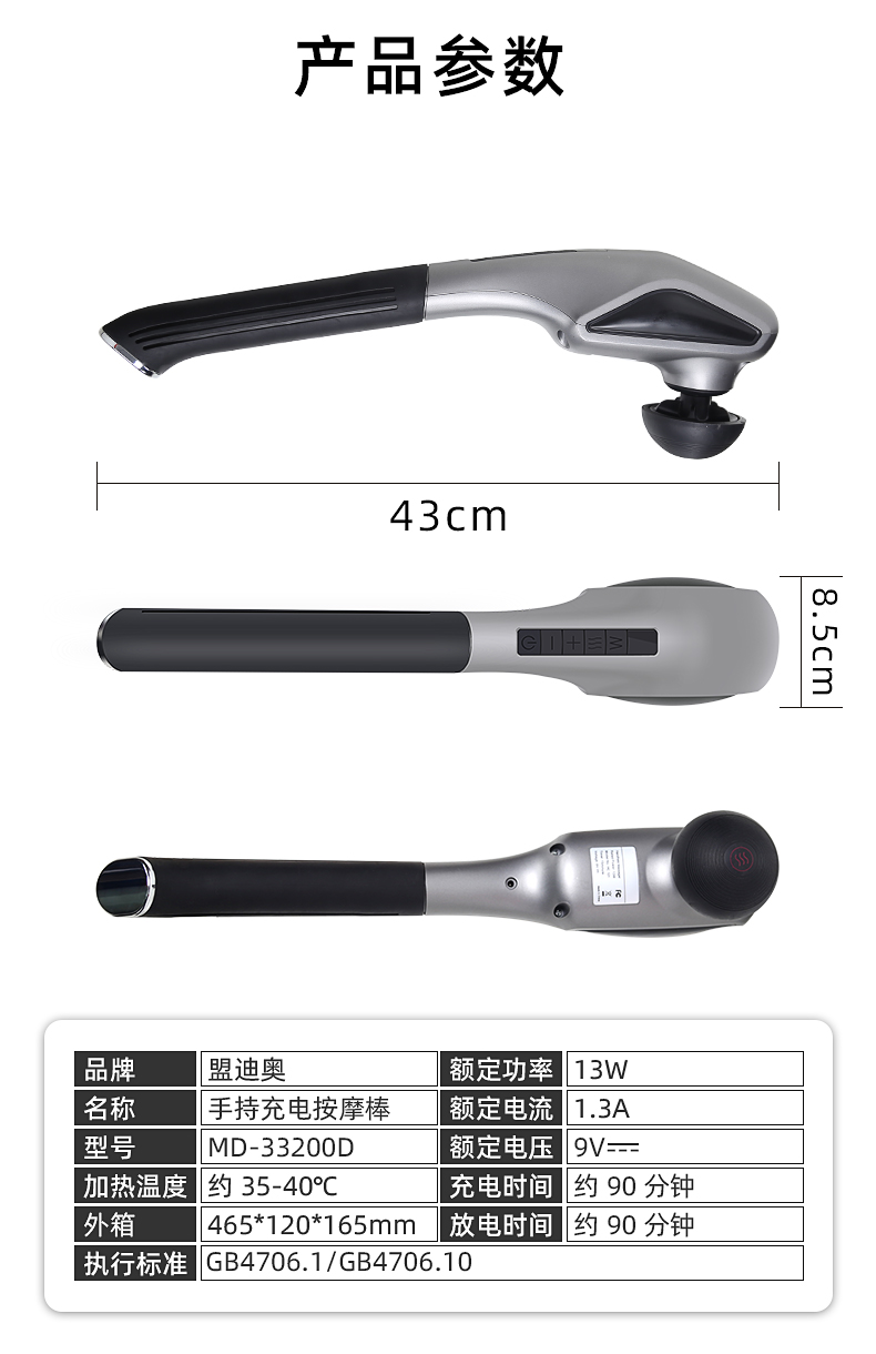 5. 12V 1A,2200maH,充電滿(mǎn)約2.0H,5檔力度,約90min.