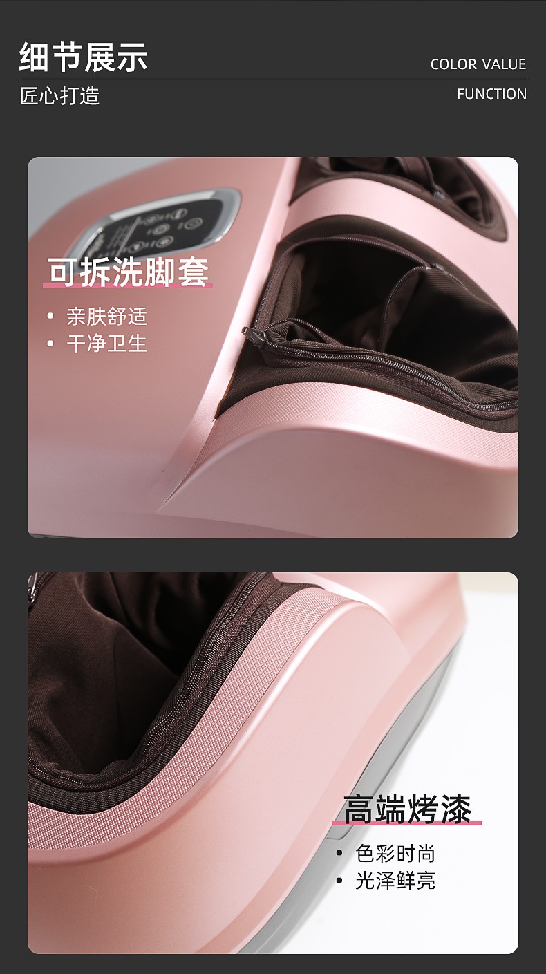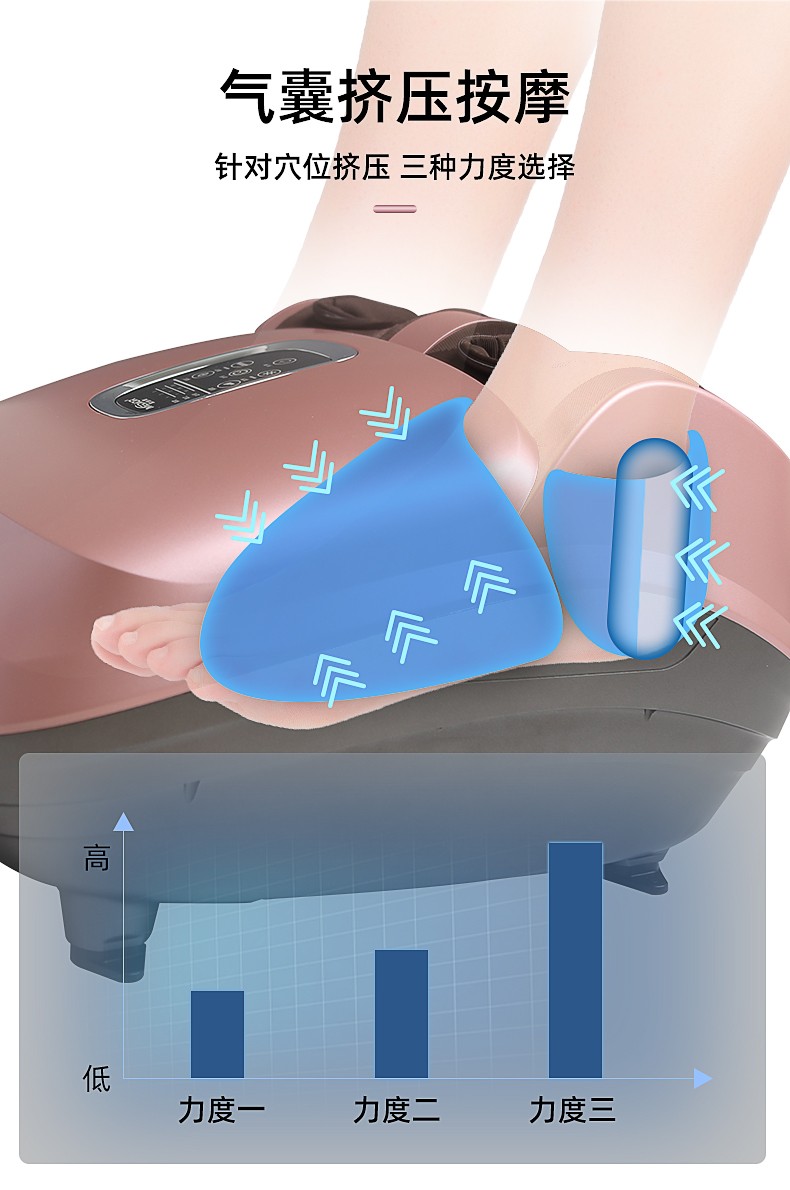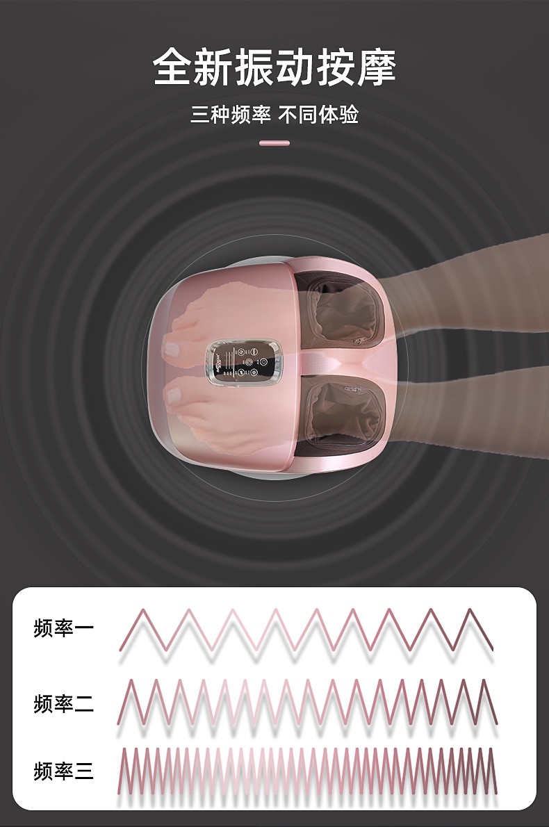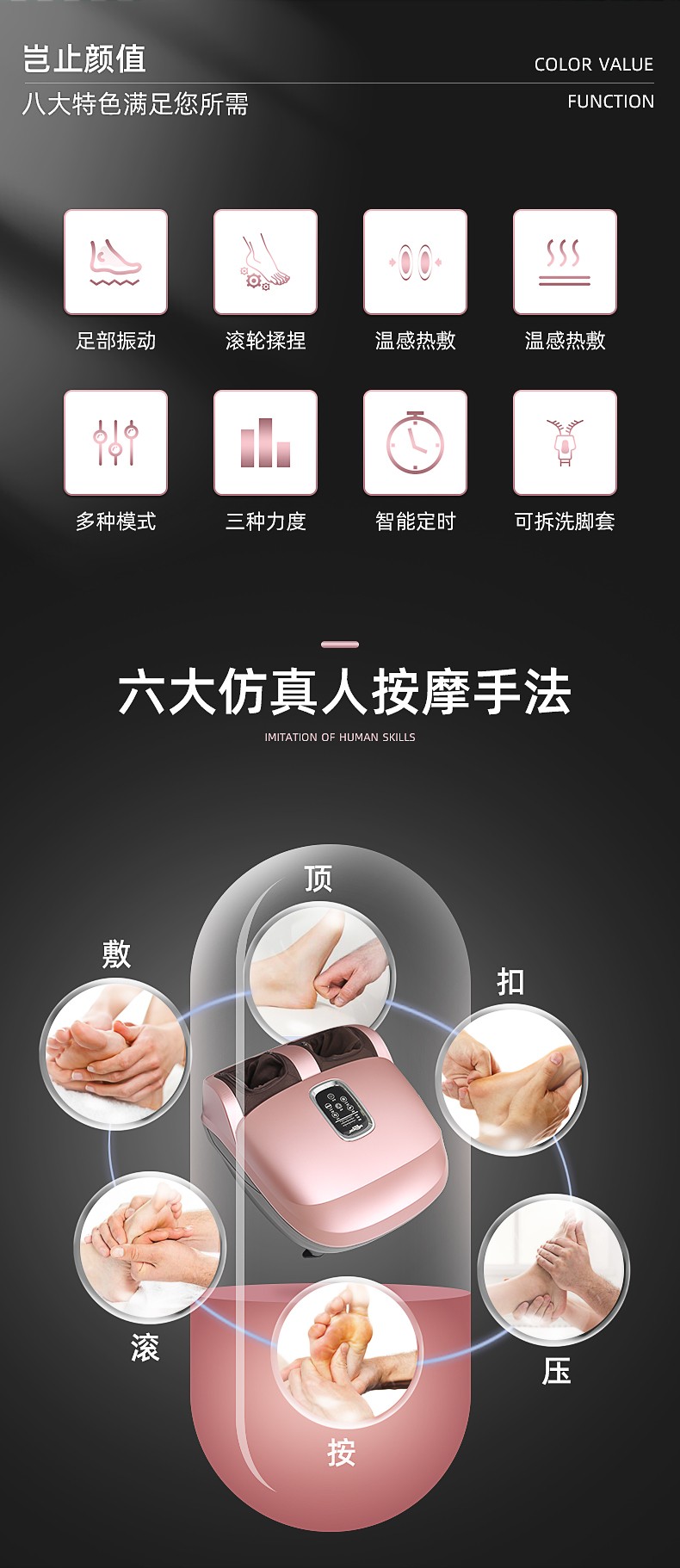滾輪按壓(腳趾)、刮痧(腳弓)、捶打(腳后跟)按摩 (多模式,多強度);