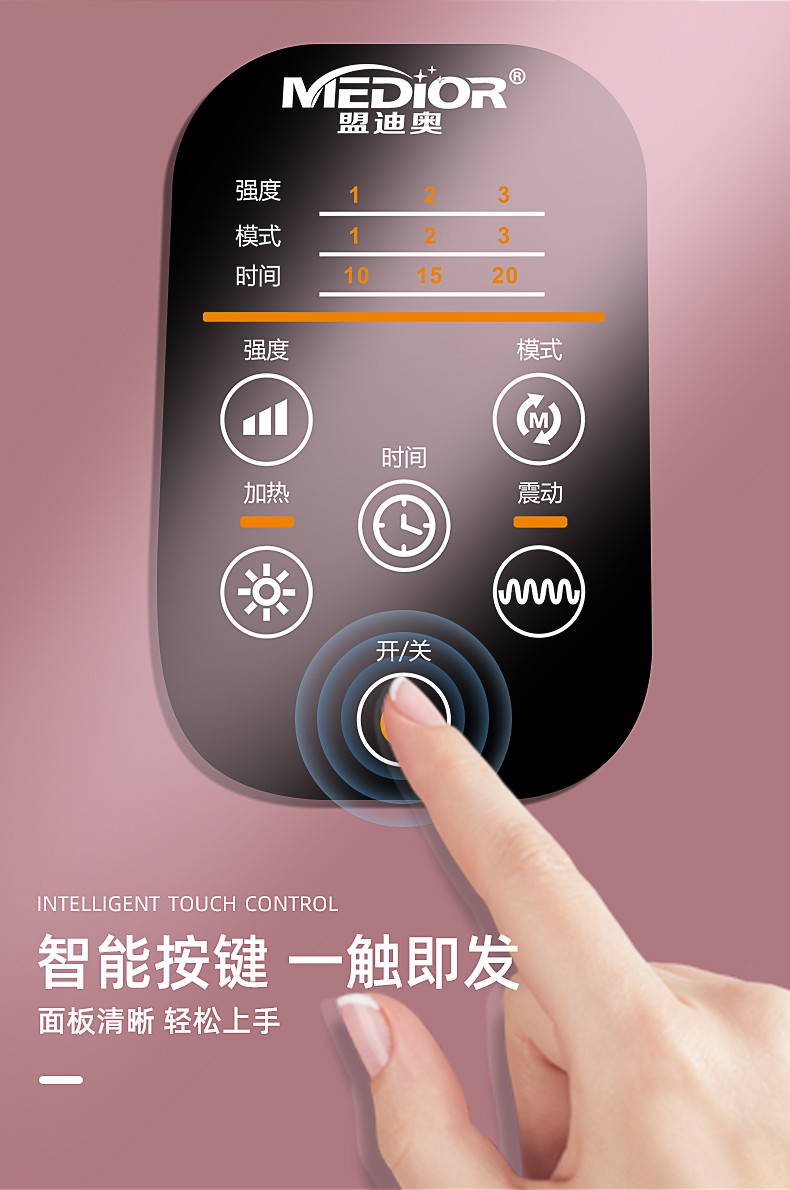 六觸控按鍵:模式,震動,時間,開關(guān),強度,加熱