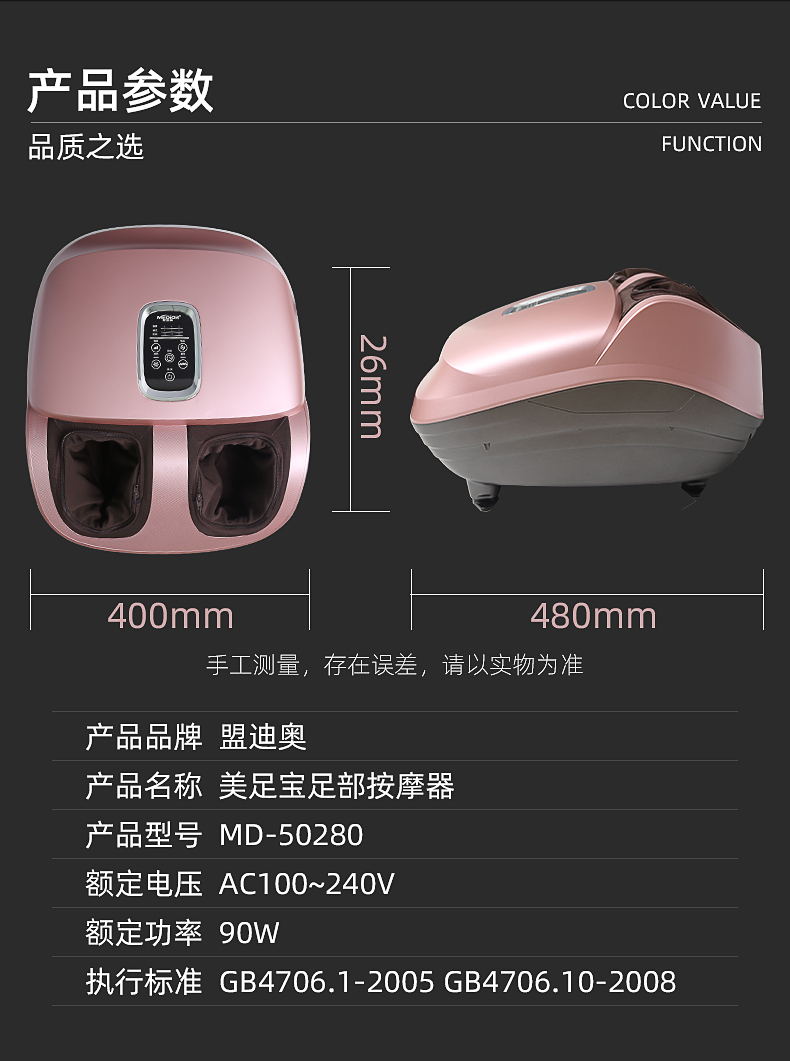 4種震動方式選擇(快速,中速,慢速,不震動);定時10,15,20分鐘關(guān)機(jī);