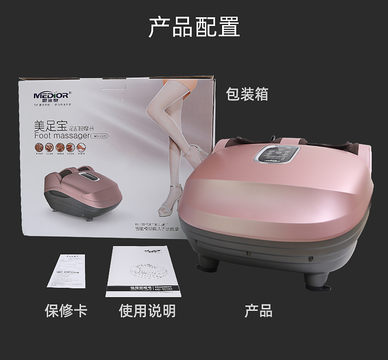震動頻率:1000次/分(高檔時,加熱按摩頭表面溫度:40-55℃